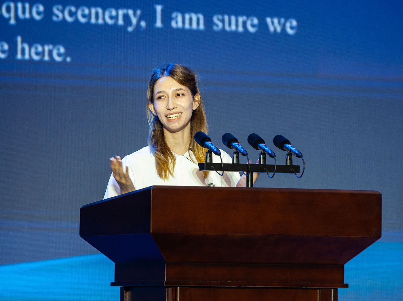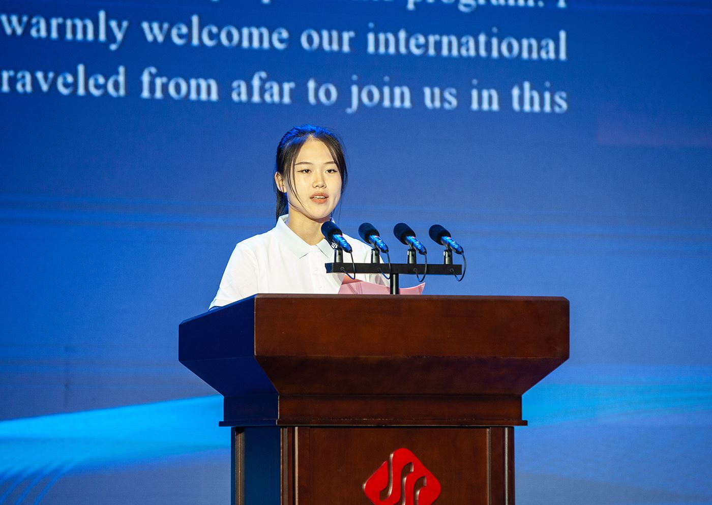 來自塔吉克斯坦共和國的山東大學留學生代表張茉和來自曲阜師范大學的中方學生代表王心怡作為中外學生代表發言。