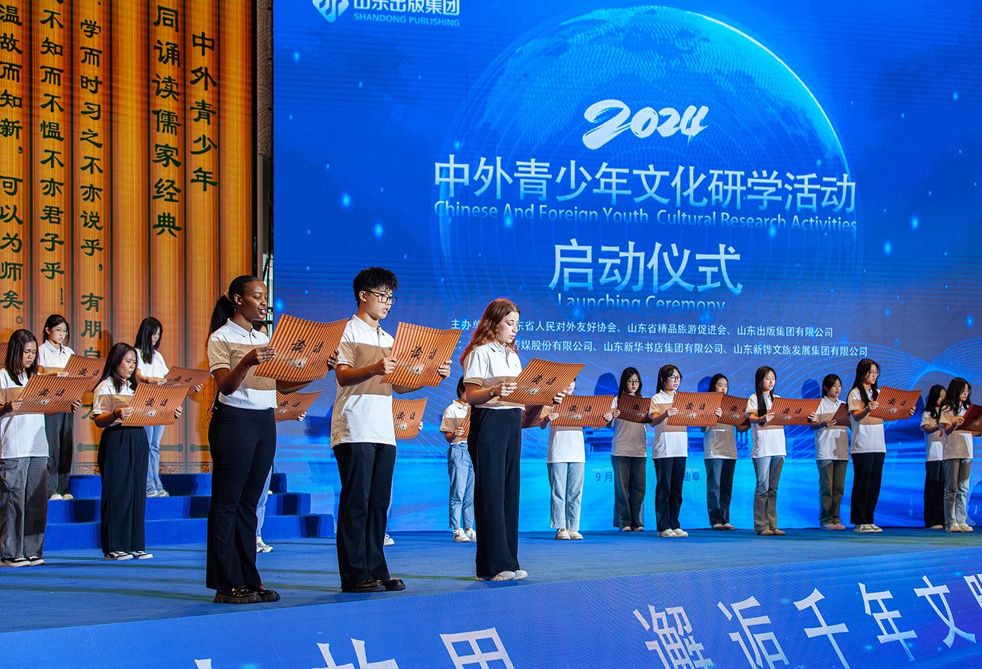 9月26日,以“探訪圣人故里,邂逅千年文明”為主題的中外青少年文化研學活動在山東曲阜中華優秀傳統文化國際研學營地舉行。9月26日,以“探訪圣人故里,邂逅千年文明”為主題的中外青少年文化研學活動在山東曲阜中華優秀傳統文化國際研學營地舉行。山東省委宣傳部副部長張同海,山東出版集團黨委副書記、總經理郭海濤,山東省文化和旅游廳科技教育處處長、一級調研員朱軍,山東省人民對外友好協會秘書長周衛,山東省精品旅游促進會副會長吉小青,山東省教育科學研究院黨委委員、教育部基礎教育教學指導委員會勞動教育專委會委員、中國教育學會勞動教育分會副理事長王秀玲,山東省委宣傳部協調處四級調研員李曉丹,山東省精品旅游促進會副秘書長張令偉,山東出版傳媒股份有限公司黨委委員,山東新華書店集團有限公司黨委書記、董事長安蓬生,山東新華書店集團有限公司黨委副書記、總經理丁兆光出席啟動儀式。