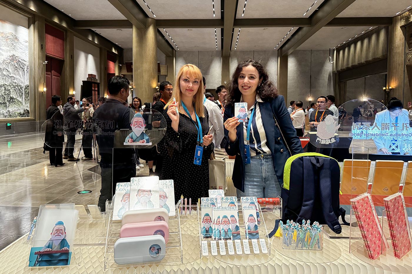 “大哉孔子”孔子主題中小學生文具展,由集團旗下山東美術出版社設計制作,共展出“孔子六藝” “孔子有云”“孔子潮人”“孔子教學”“孔府紋樣”“修身”六大系列300余個設計產品,涵蓋書包、筆記本、鉛筆盒等,將古典與現代潮流巧妙融合,吸引眾多中外嘉賓踴躍購買并咨詢合作事項。