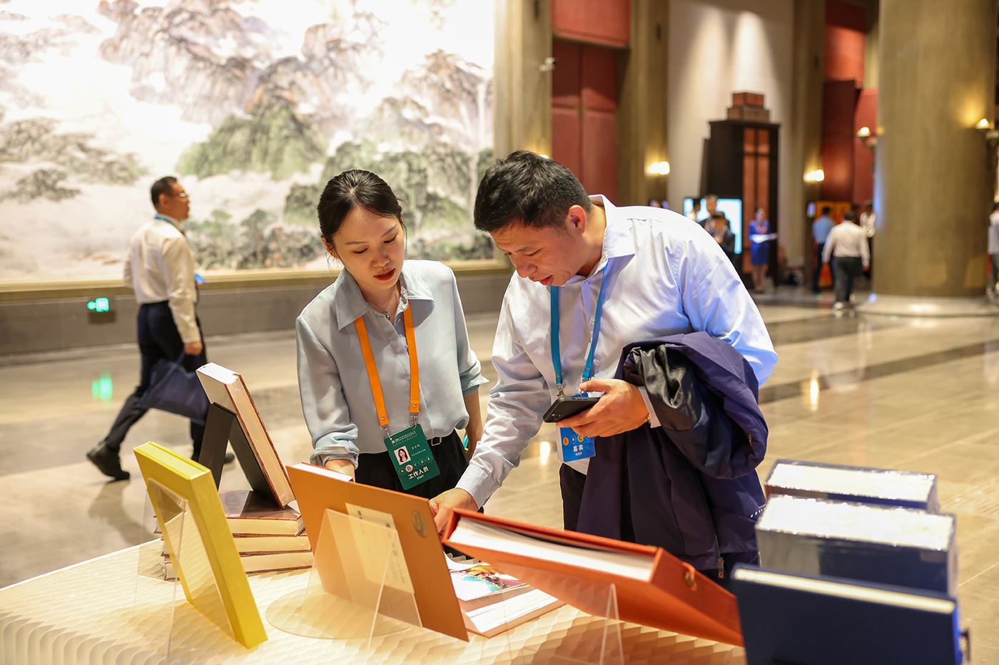 山東出版精品圖書展,主要展示了集團近年推出的重點文化工程、中華優秀傳統文化“兩創”、人文社科精品圖書,包括《儒典》《齊魯文庫》《齊書》《黃河大系》《山東文化體驗廊道故事叢書》《中國字 中國人》《論語精選(多語種對照)》等“兩創”力作,《爹》《雪線上的奔布拉:我給孔繁森當翻譯》《金色日出》《風起膠濟》等文藝精品,重點呈現山東出版集團在文脈賡續、文化傳承方面的最新成果,展現魯版圖書在新時代的積淀與創新。