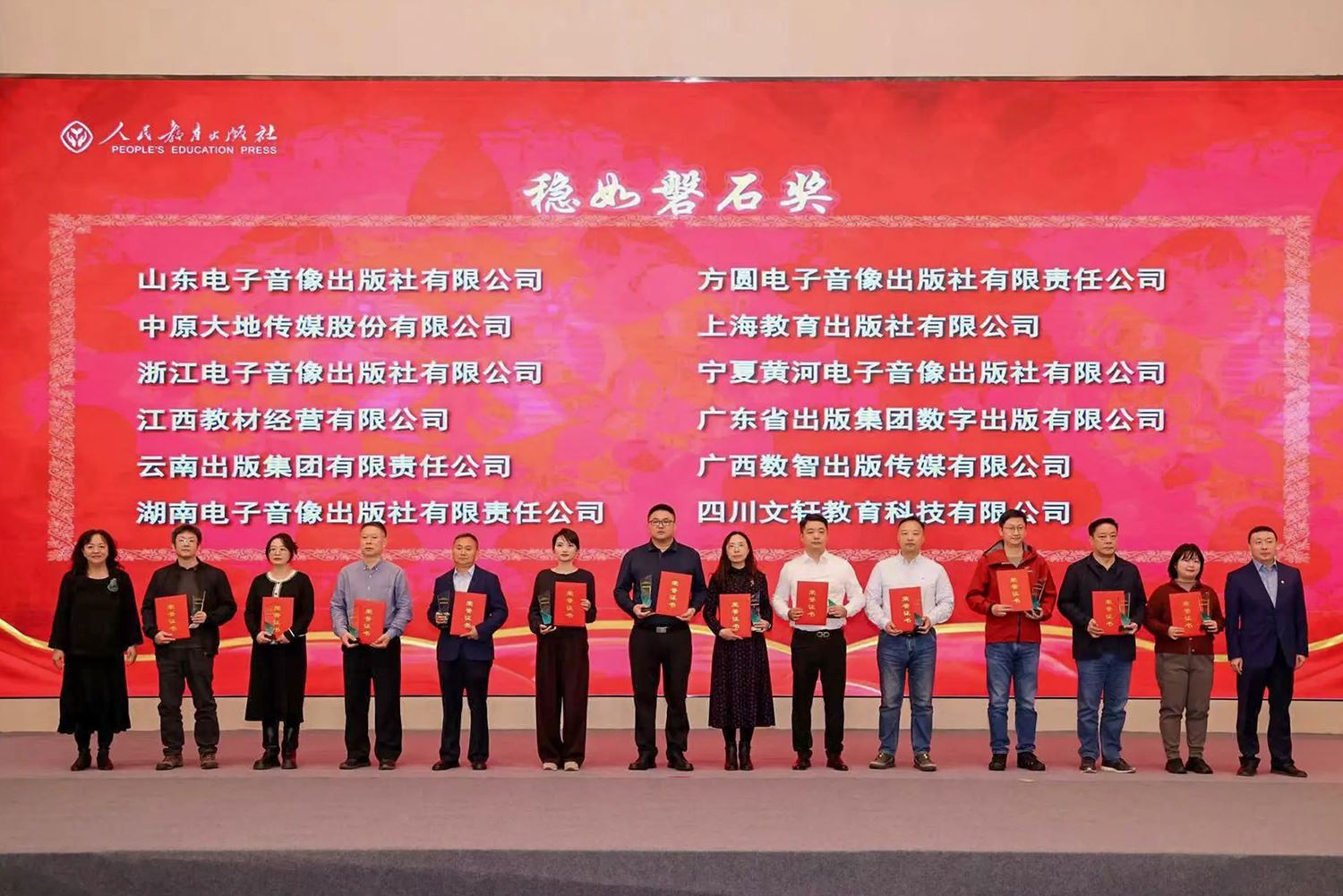 由人民教育出版社主辦、人民教育音像數字出版社有限公司承辦、中原出版傳媒集團協辦的“人民教育出版社2024年度音像數字出版工作會”在河南省鄭州市舉行。山東出版傳媒股份有限公司榮獲“百尺竿頭獎”“開拓創新獎”“卓越貢獻獎”,山東電子音像出版社榮獲“穩如磐石獎”,山東出版傳媒股份有限公司黨委委員、副總經理楊文軍榮獲“領軍人物獎”,山東電子音像出版社社長刁戈榮獲“市場精英獎”。11月21日,由人民教育出版社主辦、人民教育音像數字出版社有限公司承辦、中原出版傳媒集團協辦的“人民教育出版社2024年度音像數字出版工作會”在河南省鄭州市舉行。來自全國29個省(自治區、直轄市)的出版集團教材中心、電子音像出版社、數字公司負責人,教育科技企業負責人以及人教社各相關部門負責人,共計300余人參加會議。