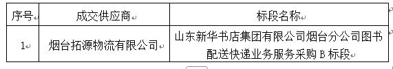 山東新華書店集團有限公司煙臺分公司圖書配送快遞業務服務采購(B標段)中標結果公示
