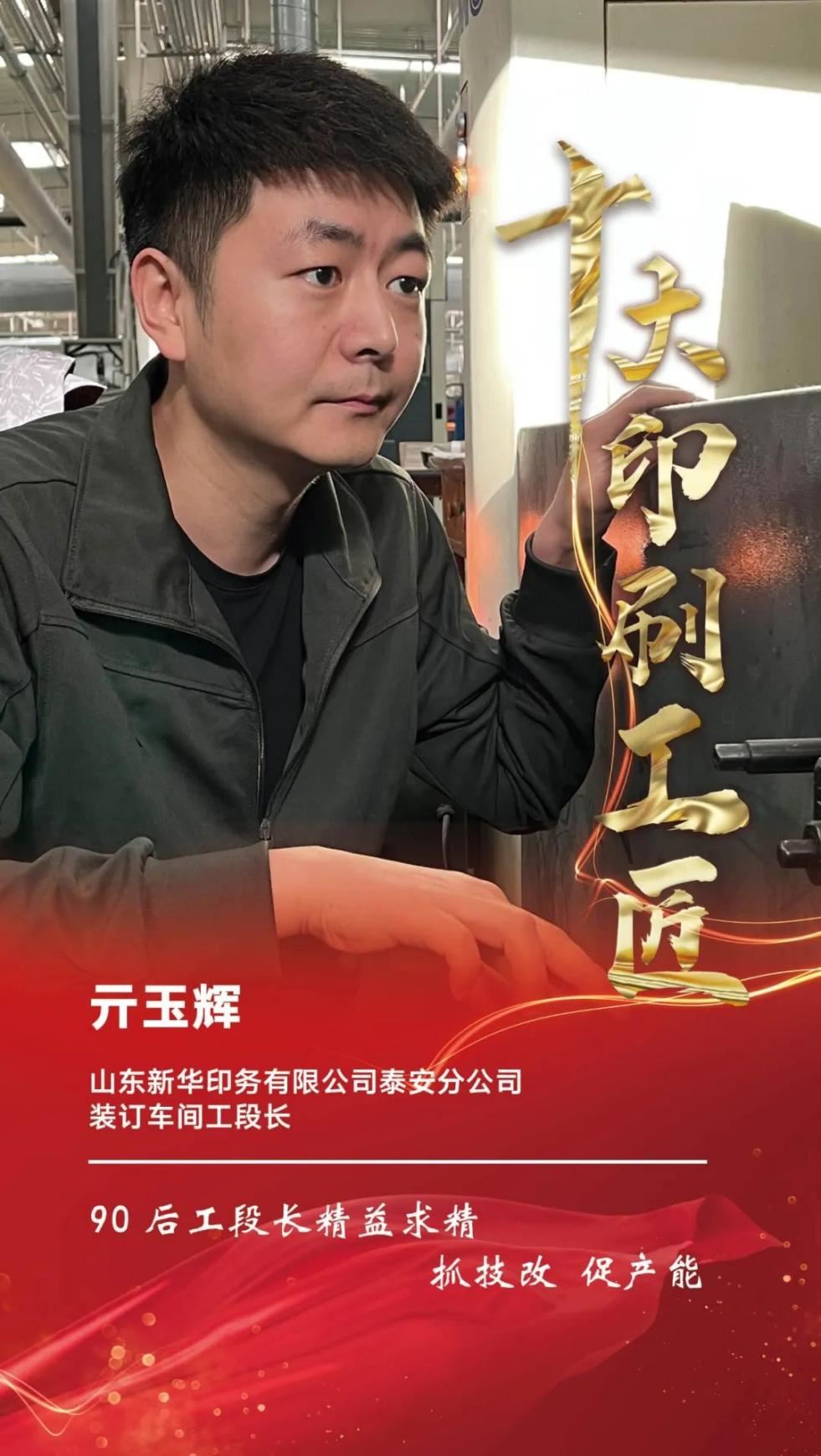 山東新華印務有限公司泰安分公司亓玉輝同志獲評生產類“十大印刷工匠”稱號。近日,由科印傳媒《印刷技術雜志》主辦的第三屆十大印刷工匠評選活動圓滿結束,評選出技術/研發類、生產類印刷工匠各10名。該活動旨在評選表彰一批具有精益求精高超技藝,創造極致職業精神,創新超越優秀品質的“印刷工匠”,為印刷行業的高質量可持續發展貢獻力量。其中山東新華印務有限公司泰安分公司亓玉輝同志獲評生產類“十大印刷工匠”稱號。