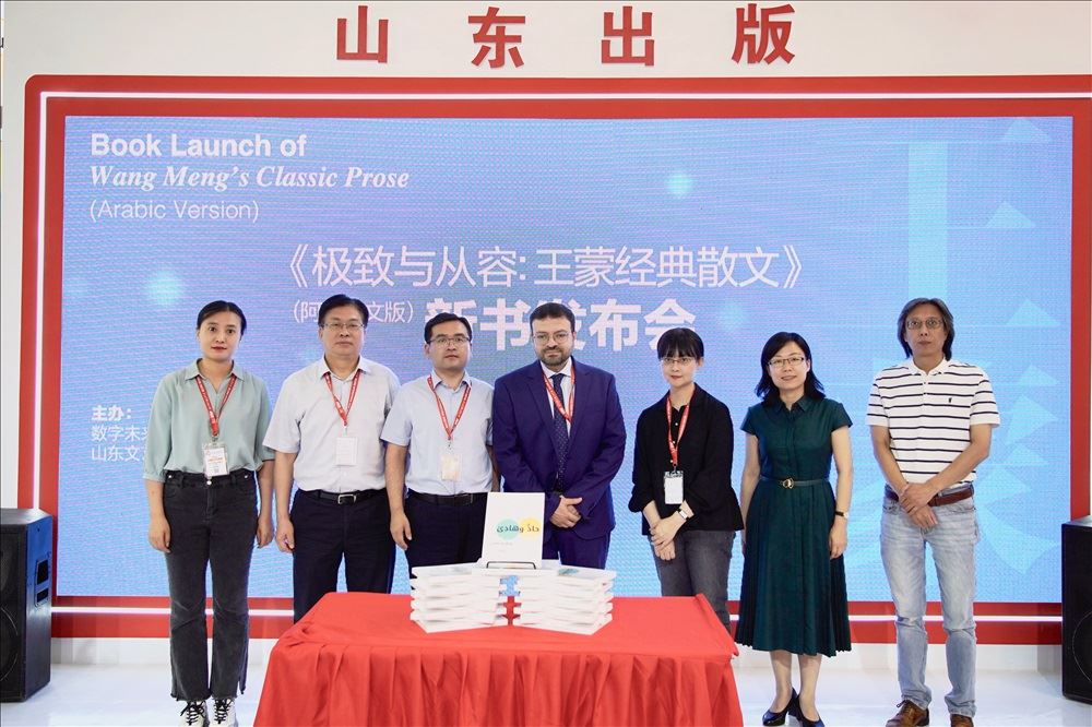 6月19日下午,山東文藝出版社與數(shù)字未來出版社在第三十屆北京國際圖書博覽會山東出版展區(qū)成功舉辦了《極致與從容:王蒙經(jīng)典散文》阿拉伯文版新書發(fā)布會。數(shù)字未來出版社首席執(zhí)行官莫炎、總經(jīng)理阿里·艾瑞斯、中國區(qū)負責人張錦意,山東省委宣傳部出版管理處處長翟晨灼,山東出版?zhèn)髅焦煞萦邢薰靖笨偨?jīng)理李運才,山東美術出版社社長李晉,山東電子音像出版社社長刁戈,以及山東文藝出版社社長徐迪南、副總編輯馮暉出席此次新書發(fā)布會。