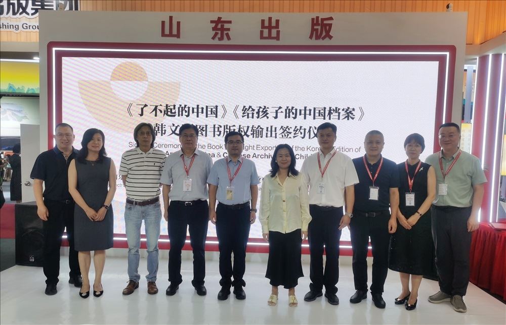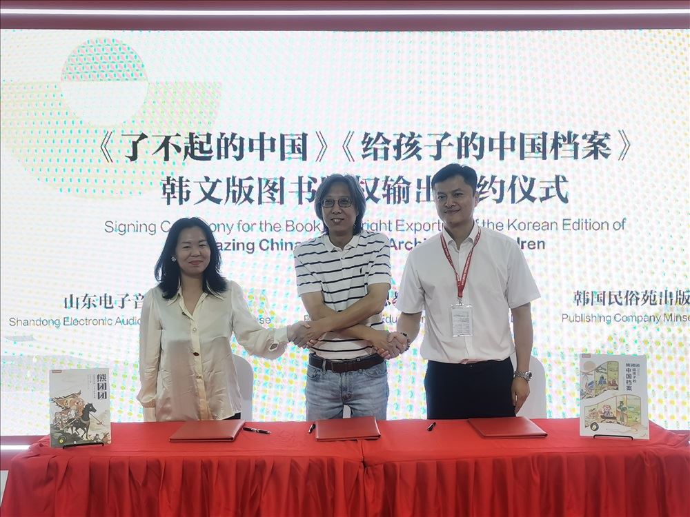 2024年6月19日,山東電子音像出版社在第30屆北京國際圖書博覽會上開啟了2項版權合作2024年6月19日,山東電子音像出版社在第30屆北京國際圖書博覽會上開啟了2項版權合作。山東電子音像出版社、北京學而思教育科技有限公司與韓國民俗苑出版社簽署《了不起的中國》《給孩子的中國檔案》韓文版圖書版權輸出協議。